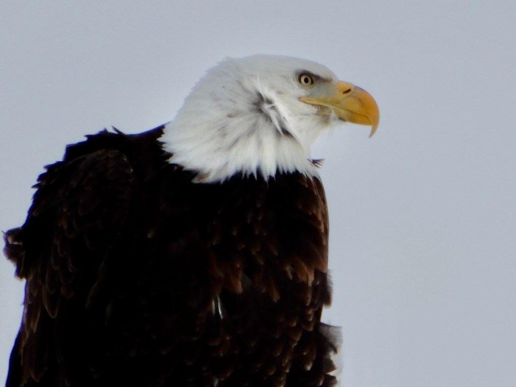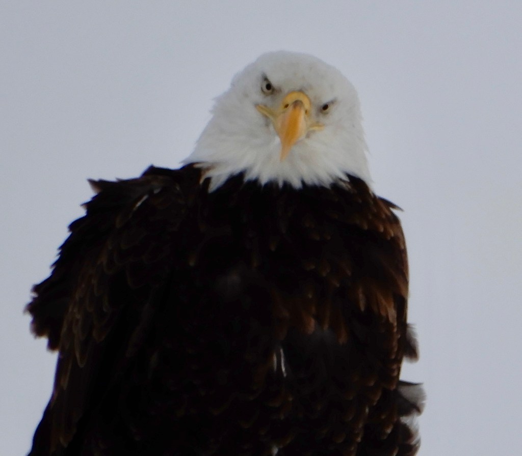 The eagle let me get two decent shots and it did not fly off. Mission accomplished. Beautiful bird- light eyes- so it’s not a juvenile.