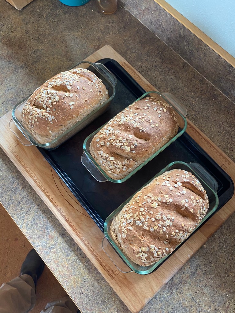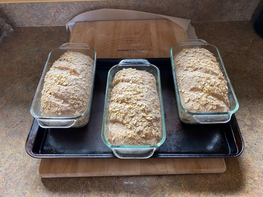 While it may seem like starting a recipe the night before is burdensome, I would argue that it is rather liberating. A significant part of the work is done overnight and the rest of it comes together pretty quickly in the early hours of the morning. I make three loaves- but there is a sidebar on the .pdf for 2, and it would be very easy math to reduce that one, but with four people eating the bread, 3 loaves lasts about a week.