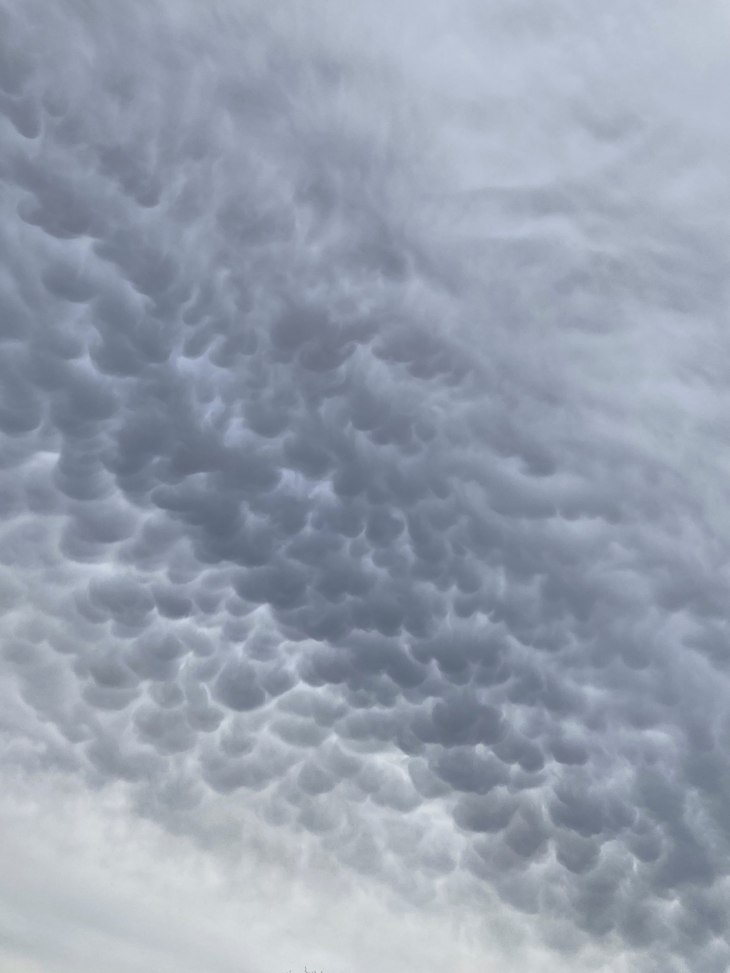 Sitting out on the deck this evening, the quality fo light started to change a bit. I looked up from my reading material and noticed that the generic grey sky that was present when I went out to the deck had been replaced by a small stretch of mammatus clouds. I’ve never seen mammals clouds in the early spring in this part of Montana. My usual experience with these is that they form along the bottom of really big anvil clouds. This was a just a small stretch, maybe 5 miles or so. The rest of the clouds were the basic stratus variety- mostly flat and featureless on the bottom. I suspect (but I will never know) that the parent cloud to these mammatus formations was a cummulostratus- that heaping up of cloud and moisture from above might explain why the mammals formed. Anyway- something is always going on outside if take the time to look around