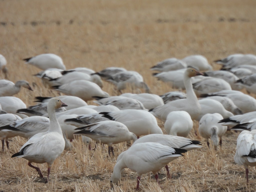 With all that as the preamble to my Wednesday evening 30 minute dog walk in the low hills around the Reservoir and started for home. But I took Supertramp (from their 1979 album, Breakfast In America) at their word and took the long way home. I’m glad I did, too. Obsidian was wet and dirty, so the delay in getting home allowed him to dry off a bit. But I also had the opportunity to find a flock of several hundred Snow Geese within a stone’s throw of one of my favorite back roads.