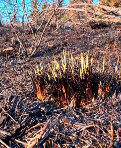 The Bitterbrush fared less well. There were lots of ash shadows where Bitterbrush formerly stood. Bitter brush, while an important forage for deer, can act as a ladder fuel where there are trees in a primarily grassland and shrub habitat. It may take a while for the Bitterbrush to come back. And I don’t know if that’s a good thing or a bad thing.