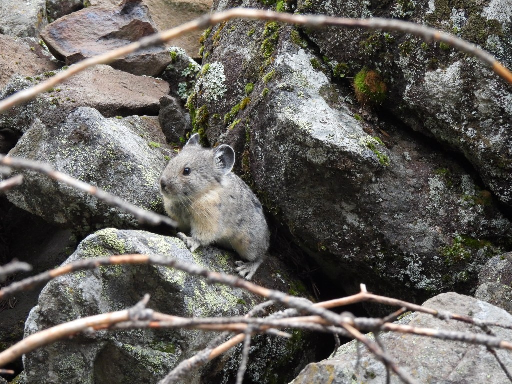 Grotto Falls was a very nice and the Lab had a terrific time swimming and shaking, and then repeating the same. There were a lot of pretty flowers in the spray zone that were absent along the rest of the 2.4 mile round trip, and the Pikas were cute as all get out doing their Pika thing in the basaltic talus.