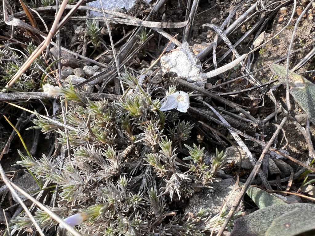 We found a single Phlox with a white bloom, a Field Pussytoes growing and looking happy and healthy, a similarly healthy looking Prairie Smoke plant looking green and lush and the another one that I am struggling to ID.