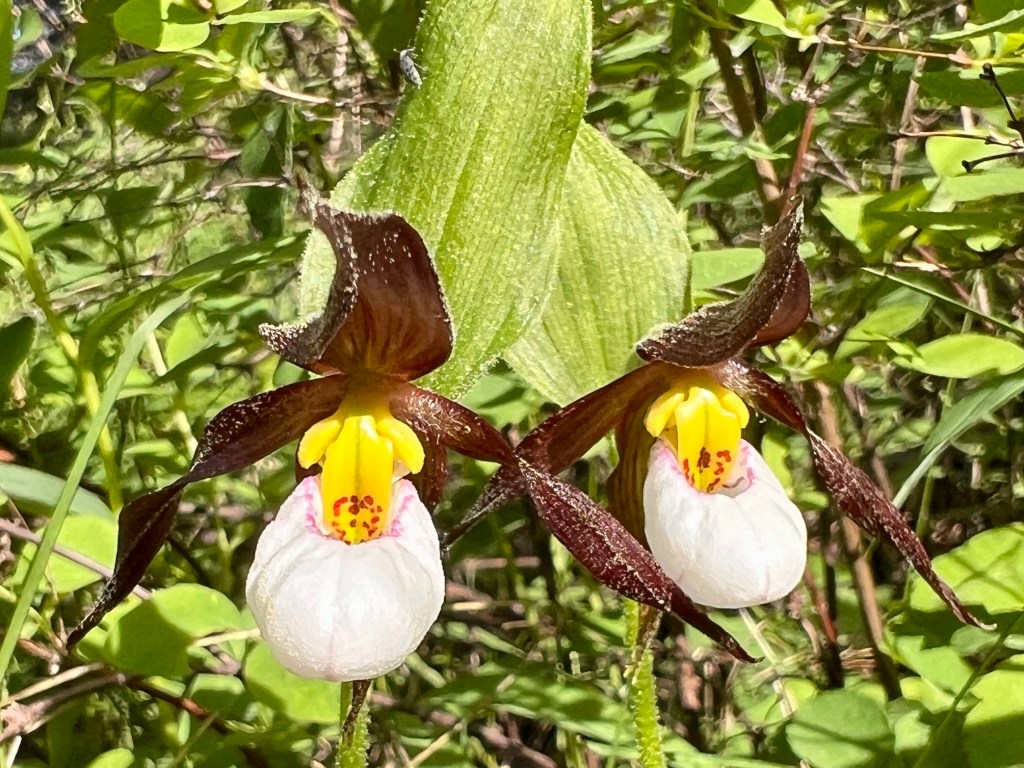 Mountain Lady’s Slippers, Scarlet Paintbrush, Hillside Arnica, one of the Fleabanes, and a Scarlet Gaura.