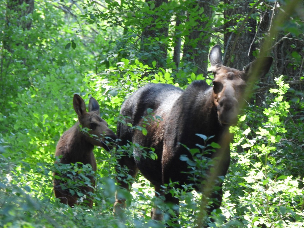 I talked to the moose as she shepherded her calf past a few meters below us. She kept a very wary eye on us, but in the end she went her way, and we went ours.