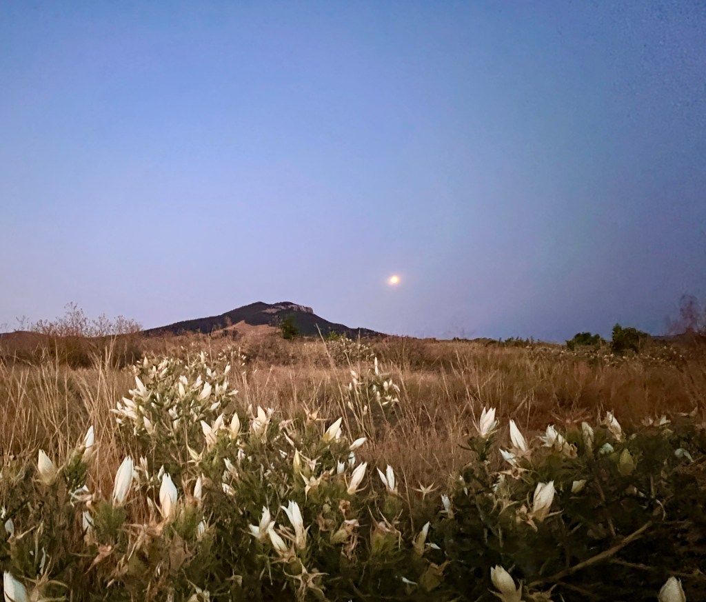 A blurry image of the Full Moon from this morning. I keep hoping to catch the Ten-petal Blazing Stars open- but not yet. Night blooming flowers can be a bit tricky. Never theless, I liked the way the light was playing here. So I stopped to take a few pictures.