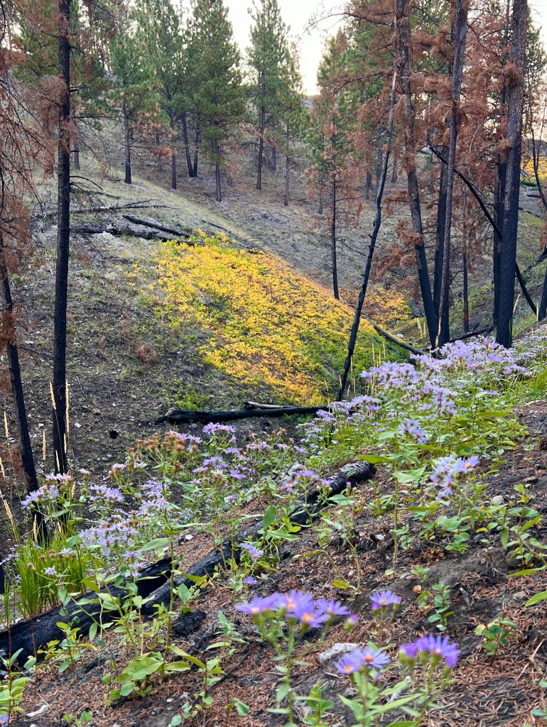 The Rodney Meadow trail on the way up hill from the Waterline trail is just starting to put its autumn colors on. This gully is awash in color from late April through September. Since this is part of one of my favorite loops in the south hills, I’m quite glad for the color.
