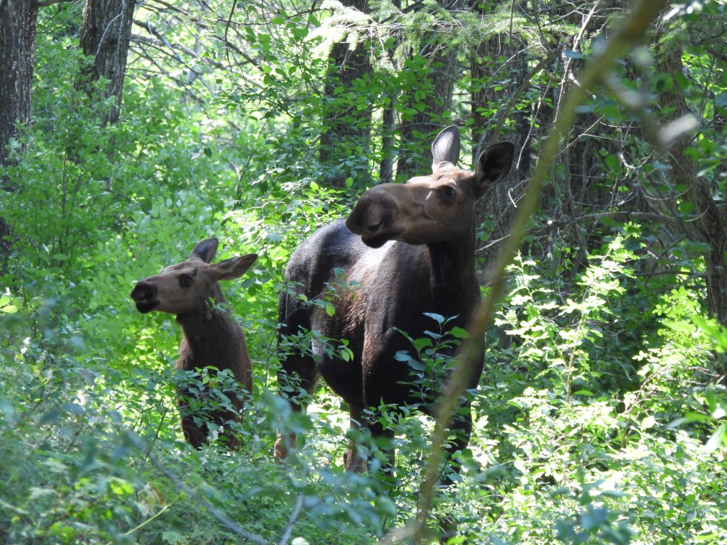 Our moose sighting on July 12 was especially memorable. The cow and calf moose were on the same trail that Obi and I were walking on. This encounter could have turned out much worse, but Obi took one look at the moose and then looked at me as if to say ‘I didn’t know the woods had giants in them!’ He stayed right by my side and followed me upslope to give the moose family more room.