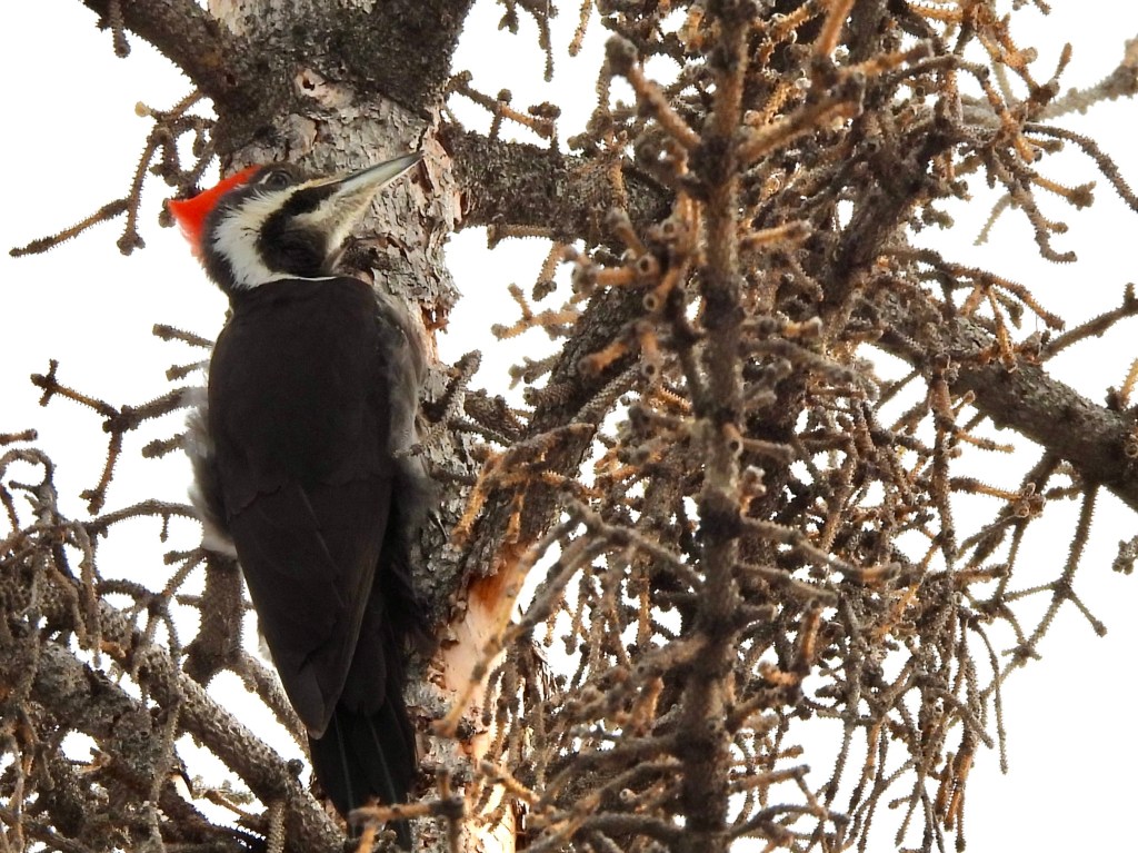 I made my way over the base of the tree and was able to get about 30 shots – I do love bird mode on the Nikon P950! The angle was not great and neither was the light, but it seemed like at lease a couple of the shots would probably be ok. In the end, that’s what a I got two decent images of a female pileated. She was calling and pounding on the tree, she wouldn’t look down towards me, so the shots are not great, but I’m really happy with how this story ended today.
